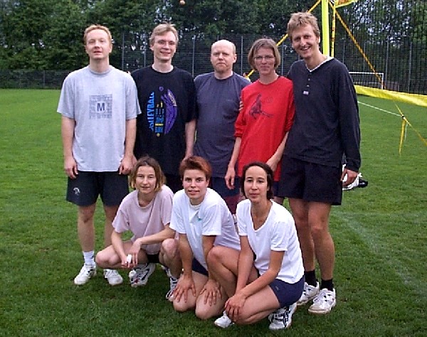 | Doch fangen wir von vorne an. Nachdem im Jahre 2001 der Grand -Slam aus terminlichen und platztechnischen Gründen leider ausfiel, hatten wir den Termin für das diesjährige Pfingstwochenende sehr früh genehmigt bekommen. Das Orga -Team traf sich 3 - 4 mal vor dem Turnier, um wieder das übliche Procedere abzuklären. Da wir über die Jahre hinweg die Teilnehmerzahl langsam höher schraubten, wollten wir es auch dieses Jahr mit mehr Mannschaften auf uns nehmen, und setzten das Maximum auf 20 Teams. Dies bedeutet eigentlich nur eine größere logistische Leistung, die Arbeit an sich bleibt die gleiche. So wurden die Einkaufslisten erneuert, und ein paar eifrige Helfer des VCL liefen sich in gewissen Großmärkten die Füße platt und stopften ihre Autos voll. Dann war es endlich soweit, Freitag nachmittag = Aufbautag. |