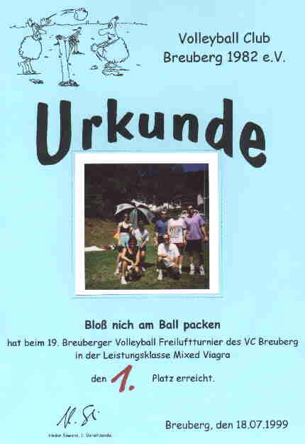 | Negativ war lediglich, daß eine der VCL-Mannschaften auf den unteren Spielfeldern spielte, so daß ein Zuschauen der anderen VCLer immer etwas schwierig war. // cvb |
