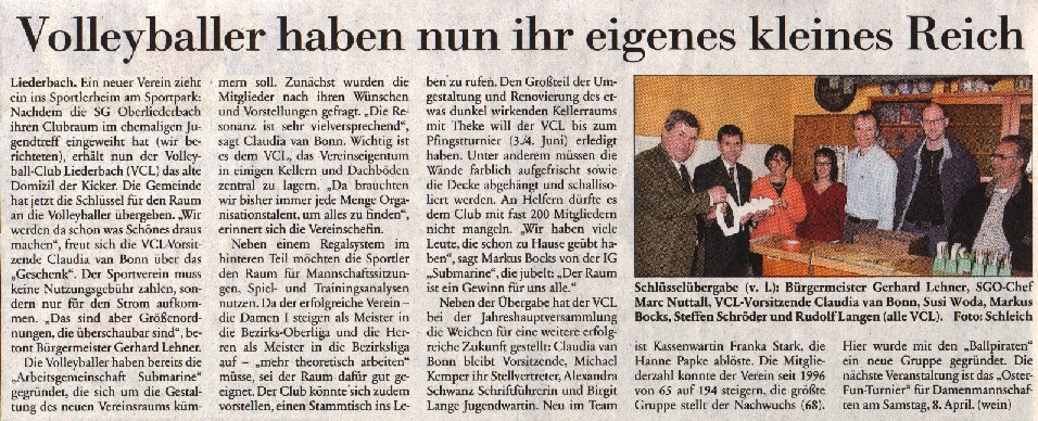 den neuen Vereinsraum des VC Liederbach. Nach und nach wird es immer mehr