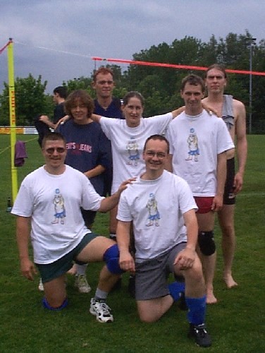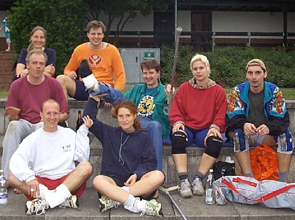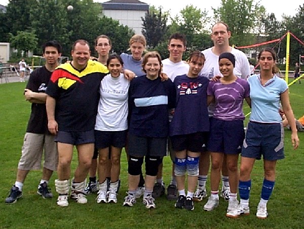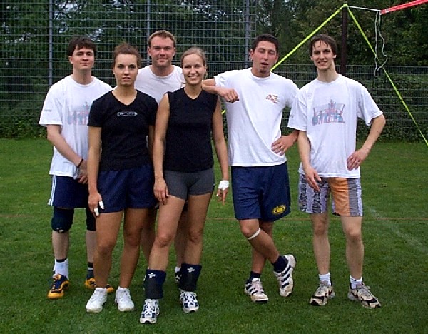 | Doch fangen wir von vorne an. Nachdem im Jahre 2001 der Grand -Slam aus terminlichen und platztechnischen Gründen leider ausfiel, hatten wir den Termin für das diesjährige Pfingstwochenende sehr früh genehmigt bekommen. Das Orga -Team traf sich 3 - 4 mal vor dem Turnier, um wieder das übliche Procedere abzuklären. Da wir über die Jahre hinweg die Teilnehmerzahl langsam höher schraubten, wollten wir es auch dieses Jahr mit mehr Mannschaften auf uns nehmen, und setzten das Maximum auf 20 Teams. Dies bedeutet eigentlich nur eine größere logistische Leistung, die Arbeit an sich bleibt die gleiche. So wurden die Einkaufslisten erneuert, und ein paar eifrige Helfer des VCL liefen sich in gewissen Großmärkten die Füße platt und stopften ihre Autos voll. Dann war es endlich soweit, Freitag nachmittag = Aufbautag. |