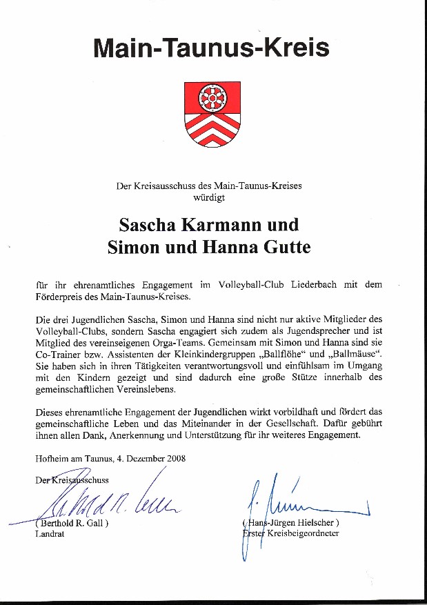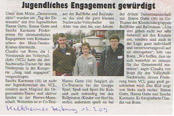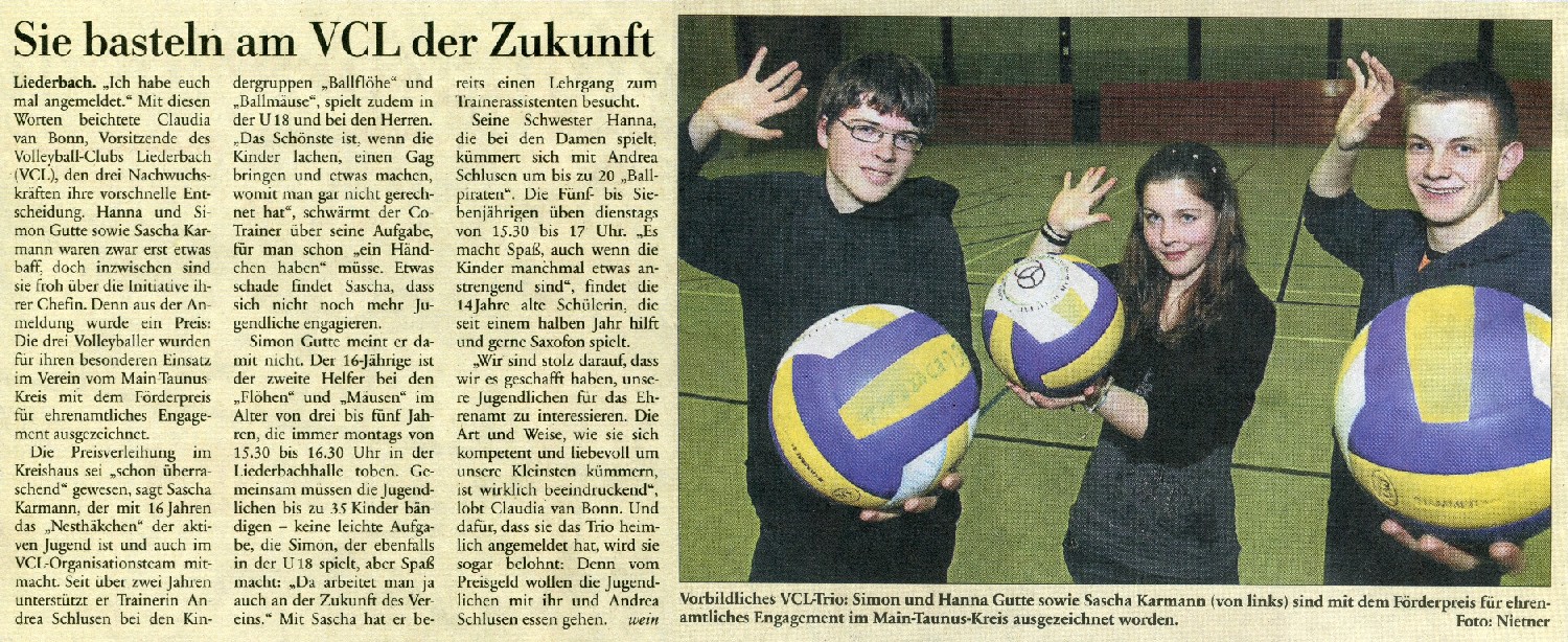 Ehrenamts-Förderpreis für VCL-Jugendliche