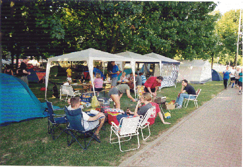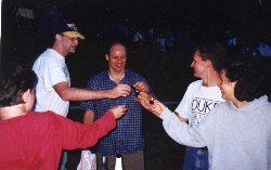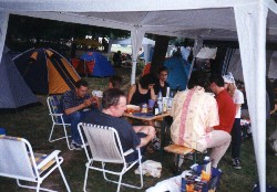 | Wie in den vergangenen Jahren auch gab's vor der eigentlichen Party im Festzelt schon eine kleine Vorfeier in den Pavillions, zu der einige sogar extra anreisten. Alles in allem war die Stimmung äußerst feuchtfröhlich - nicht nur äußerlich. | ||||||||||||||||||||||||||||||||||||